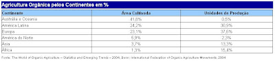 Quando analisada a produção orgânica por distribuição continental, verifica-se que Austrália e Oceania possuem a maior área cultivada com o menor número de unidades de produção, isto pode ser explicado pela grande área de pastagens em sistemas de pecuária orgânica.